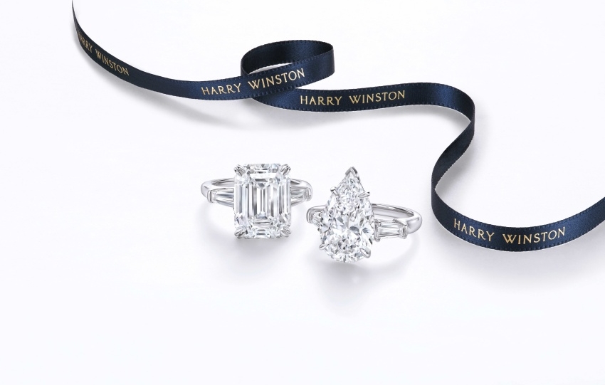 Harry Winston in Hong Kong presents Classic Winston engagement rings celebrating modern women and life milestones. The house selects color grades D E F and follows strict four Cs standards, crafting custom platinum settings with split shank and long tapered side stones for emerald round cushion and pear cuts paired with Tryst Ribbon Winston Truly…