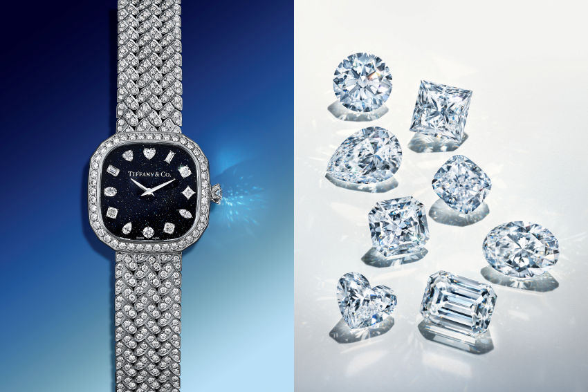 Tiffany & Co. recently updated its Eternity by Tiffany watch collection, pairing the series signature continuous diamond setting with a dark aventurine dial and a mix of diamond cuts to create greater visual contrast and layered detail.